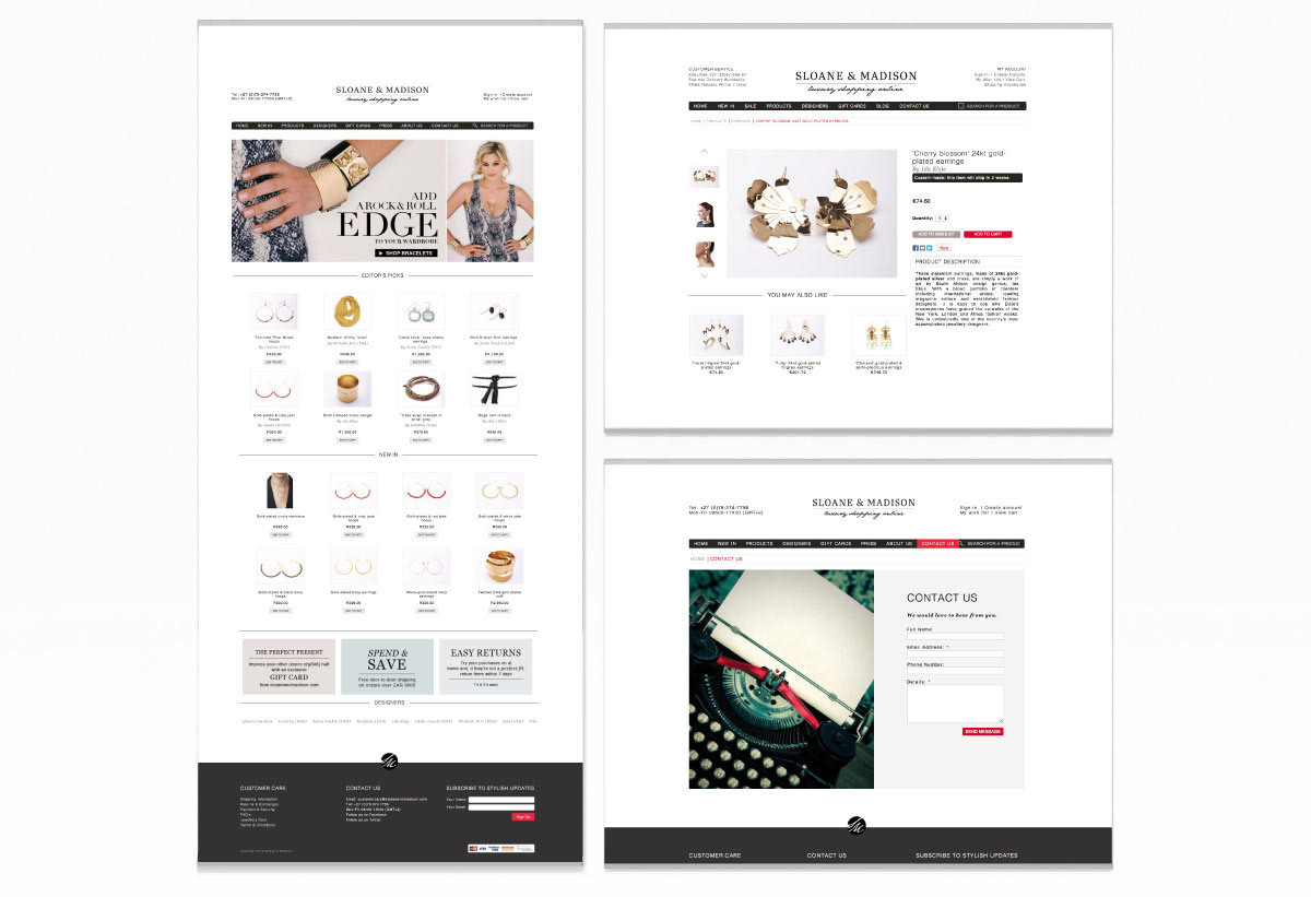 Corporate design and user interface design for Sloane & Madison - an online shop for luxury jewelry. Besides the design, I looked after the client and coordinated the cooperation with the agency and the IT company.